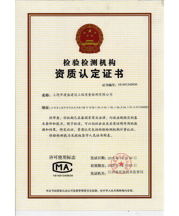 上饒市建盛建設工程質(zhì)量檢測有限公司